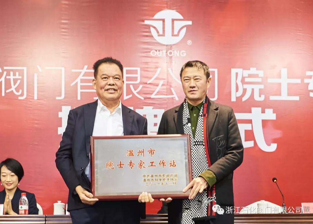 溫州市科協(xié)副主席戴維文向浙江石化閥門(mén)有限公司董事長(zhǎng)楊榮水先生頒授“院士專(zhuān)家工作站”牌匾,浙江石化閥門(mén)有限公司總經(jīng)理?xiàng)钸x榮向中國(guó)工程院陳學(xué)東院士頒發(fā)聘書(shū),就此,院士工作站正式建站。